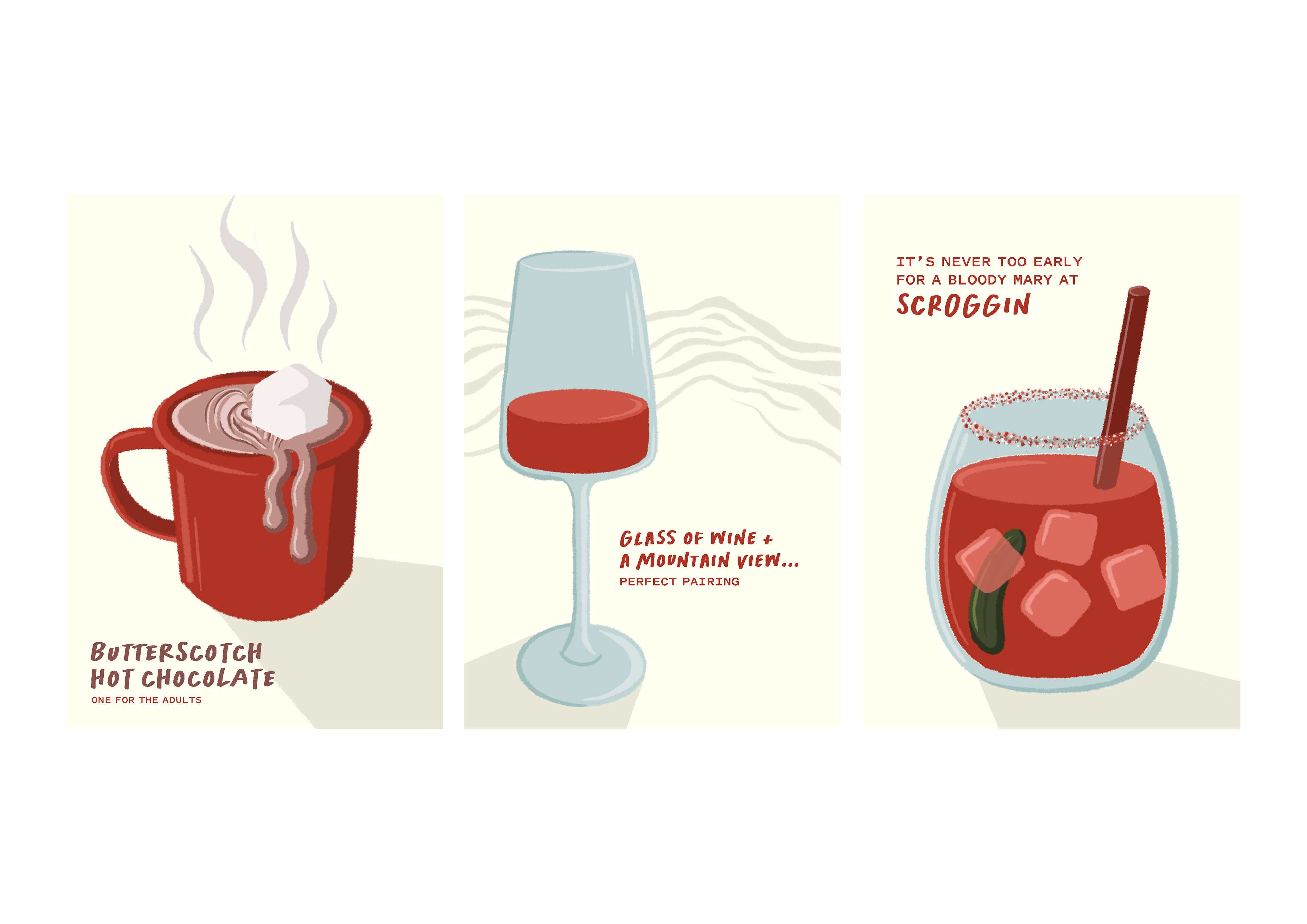 For this project I Illustrated and designed this mini poster series to be used inside the cafe on 'table talkers'